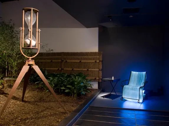 Post Gallery, Los Angeles, California, 2000 hourglass, phosphor, steel, fabric, light, sound This site and…