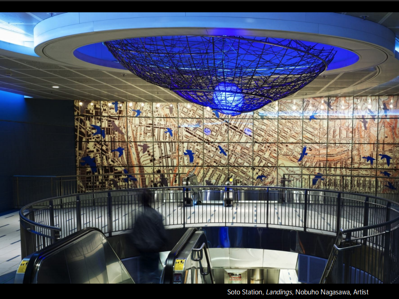 Commissioned by Metropolitan Government, Japan 42,000-square-foot plaza / Phosphor, Granite, Concrete, Mist fountain Architect: Nikken Sekkei…